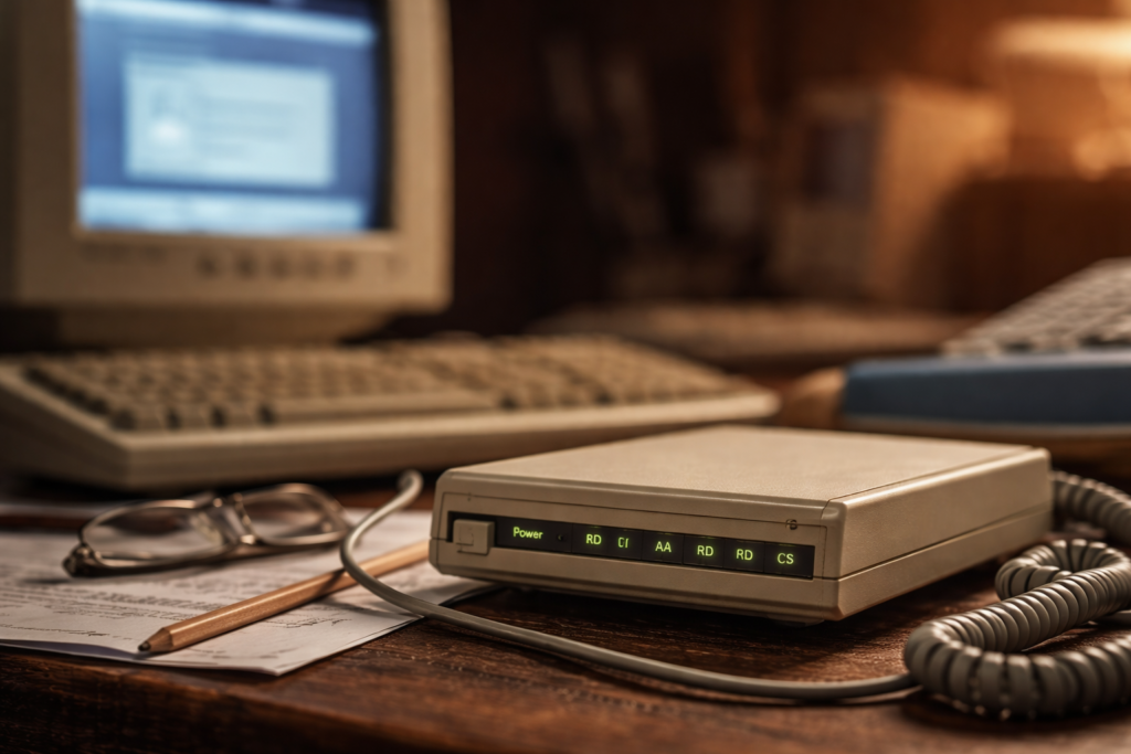 Para quienes tengan curiosidad por entender mejor la evolución de Internet, conviene recordar que antes del gran salto que supuso el ADSL, la opción más habitual era la conexión mediante la línea telefónica. El módem convertía los datos en sonido, lo que daba lugar a una conexión limitada y frágil: si alguien llamaba por teléfono, la conexión se interrumpía.
